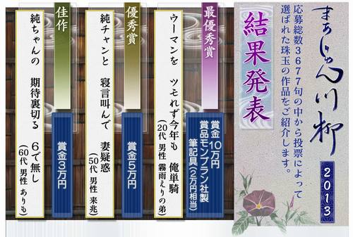まあじゃん川柳最優秀賞は「ウーマンを ツモれず今年も 俺単騎」。