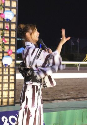 フジテレビ系「SUMMER NUDE」(月曜後9・0)でヒロインを務める香里奈の来場を記念し、最終レースを特別に「SUMMER NUDE賞」と命名。夜空に映える艶っぽい浴衣姿も披露し、夏休みの親子連れから歓声を浴びた。