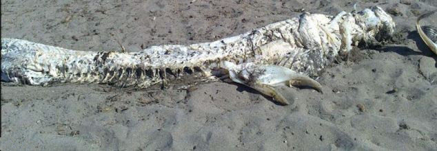 英紙『デイリー・メール』22日付の報道によると、先般、体長4メートルの四角い頭を持つ、まるで「怪獣」にような海底生物がスペインの海洋生物学者らを困惑させているという。奇妙な体躯を持つ、この海底生物は初めて発見されたものである。浜辺に打ち上げられた死体は腐敗し始めているため、既に埋められたという。
