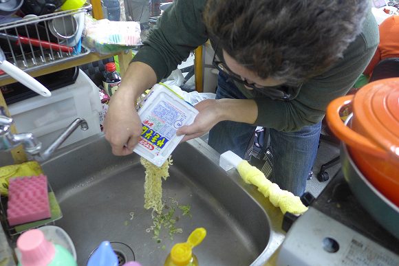 ・湯切り後に蓋に麺が付いてたらデコピンで落とす。